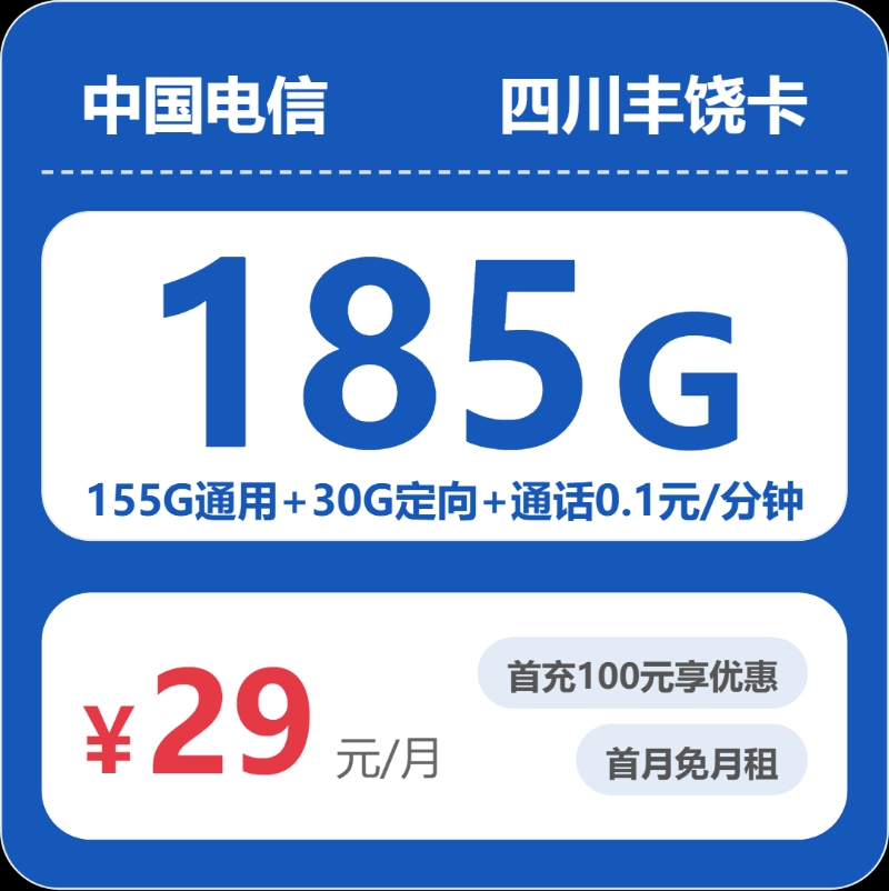 宽广卡29元包120G通用+30G定向+100分钟通话